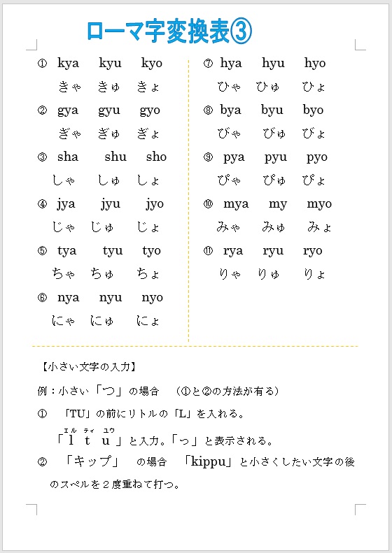 ・ローマ字変換表